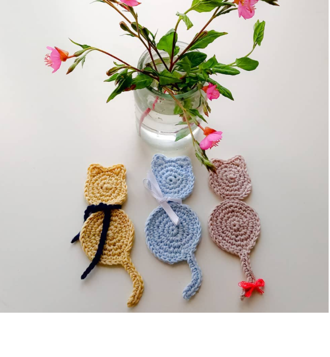 Podem ser feitos de várias formas e feitios. Estes são em formato gato e têm o esquema gratuíto, aqui! Podem ser feitos em qualquer tipo de fio, mas para este tipo de trabalho prefiro usar algodão.